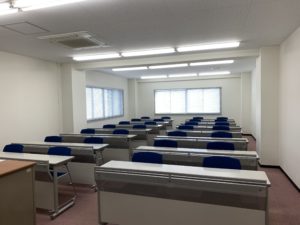 講師先生方にはご自宅もしくは学校内別教室からオンライン配信していただき、学生は3階と4階の教室に分かれ、受講いたします。